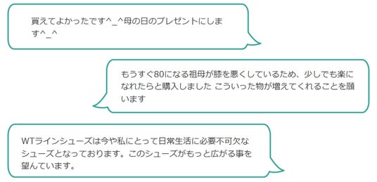 WTシューズは「立って、歩く」という人間が当たり前にできてきたことを、当たり前に続けられるよう、人生の最後まで歩く「100歳まで歩く力」と、歩けることから生じる「喜び」をつくるきっかけを提供しています。