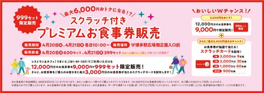 [イベント4.] 最大6,000円おトクになる!?スクラッチ付きプレミアムお食事券を販売!お食事券12,000円分を9,000円で、999セット限定販売!さらに、最大3,000円分のお食事券が当たるチャンス!