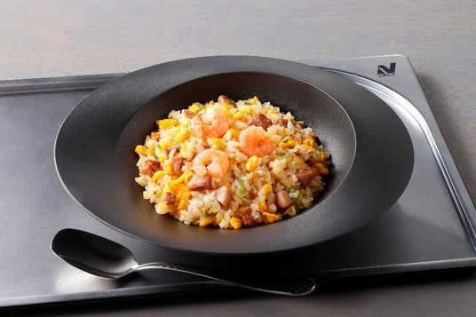 ニチレイフーズの技術を結集して大阪・関西万博向けに開発した炒飯を、店舗にて、温度や時間等の条件を独自にプログラム設定した自動炒め調理を行うことで、お客様に出来立ての状態で提供いたします。テックマジックの最新炒め調理ロボット「I-Robo2」を活用することで、冷凍炒飯の美味しさの再現性と、人手のかからない自動炒め機による調理の均質性とを掛け合わせることで、安定した美味しさと人手不足への対応を両立してまいります。