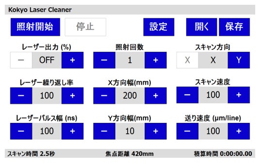 照射方式には2軸バフィングモードを搭載しており、母材へのダメージを最小限に抑えながら、滑らかな表面仕上げを実現します。また、パルス幅を調整できるため、対象物に応じた繊細な加工条件の設定が可能です。従来の高出力モデルとは異なるアプローチで、細部までこだわった仕上がりを求めるお客様に最適な一台です。