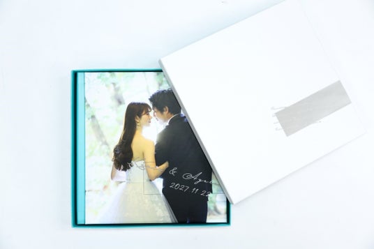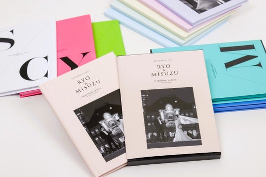 洗練されたデザインで、まるでふたりのオリジナル写真集。雑誌「Hotel Wedding」公認花嫁が商品開発。裏面にはイニシャルがデザインされ、カラーバリエも豊富。