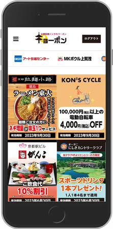 京都新聞アプリや、ウェブサイトの専用ページで表示するデジタルクーポンが「キョーポン」です。