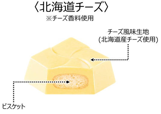 北海道生乳から作られた北海道チーズのパウダーを使用したチーズ風味生地にビスケットを組み合わせました。チーズの塩味と生地の甘さ、ビスケットの香ばしさが絶妙にマッチしています。