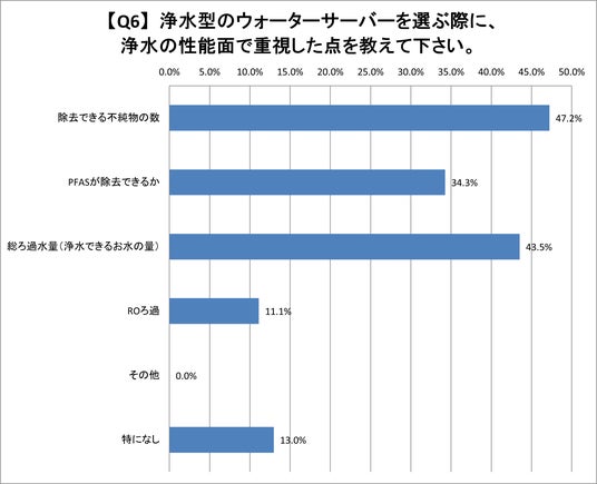Q6.浄水型のウォーターサーバーを選ぶ際に、浄水の性能面で重視した点を教えて下さい。(複数回答)
