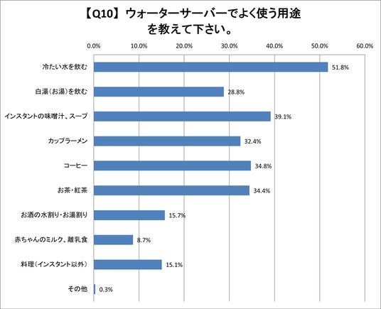 Q10.ウォーターサーバーでよく使う用途を教えて下さい。(複数回答)