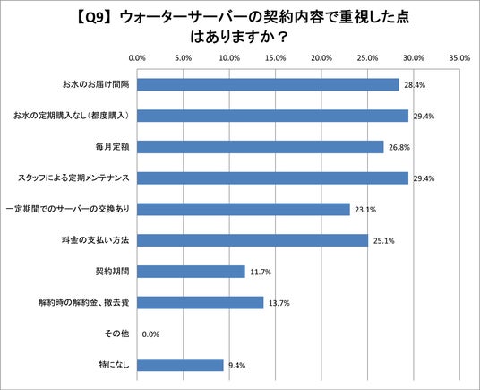 Q9.ウォーターサーバーの契約内容で重視した点はありますか?(複数回答)