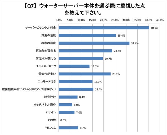 Q7.ウォーターサーバー本体を選ぶ際に重視した点を教えて下さい。(複数回答)