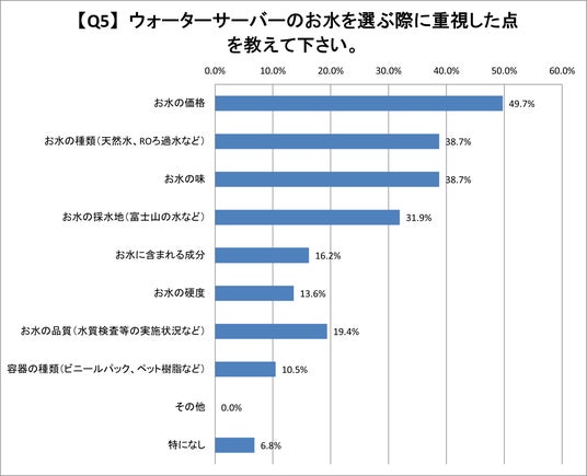 Q5.ウォーターサーバーのお水を選ぶ際に重視した点を教えて下さい。(複数回答)