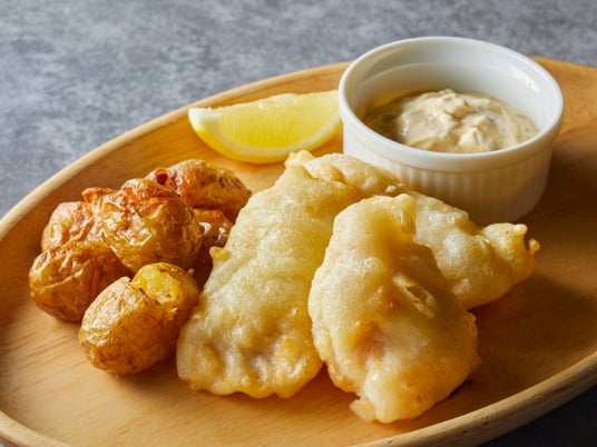 肉厚の鱈の旨みを引き出すために薄衣で、揚げたフライはサクサクふわっとした食感に。小粒の新じゃがいもは軽く潰して揚げることで、素材の風味とカリカリの食感を楽しめる一品に仕上げました。