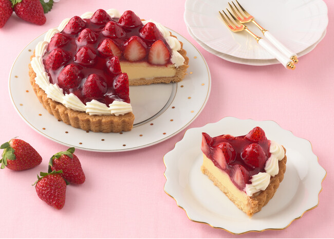 香り高く、上品な甘ずっぱさが特長の旬の苺「きらぴ香」を贅沢にのせました。苺のジューシーな甘ずっぱさとカスタードのまろやかな甘み、さっくりと香ばしいタルトが絶妙に調和する季節限定タルトです。