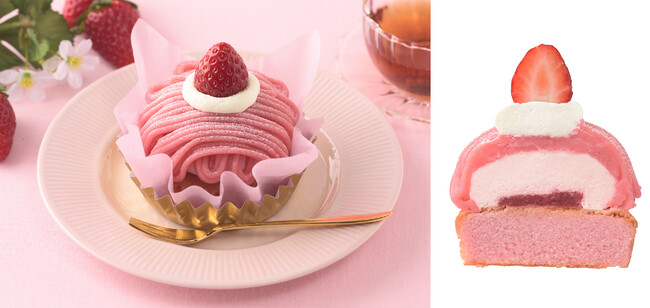 どこを食べても苺を感じる、苺づくしの季節限定モンブランです。苺マドレーヌの上に、まろやかな甘みの苺ミルククリームと、濃厚な味わいの苺あんを絞り、アクセントにほんのり甘ずっぱい苺ジャムを忍ばせました。苺の香りと味わいが口いっぱいに広がります。