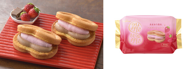 濃厚な甘みと華やかな香りが特長の「あまおう苺」を練り込んだいちごホイップクリームと、芳醇でコク豊かなベルギー産チョコレートを使用したチョコカスタードをサンド。しっとりふんわり食感のワッフルが包み込む、苺とチョコのハーモニーをお楽しみください。