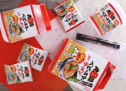 丸源ラーメンのこだわりが詰まった看板商品の「熟成醤油ラーメン 肉そば」の味をイメージしたベビースターラーメンです。アミューズメント施設限定景品として4月中旬より全国のアミューズメント施設(ゲームセンター、オンラインクレーンゲーム)に登場!