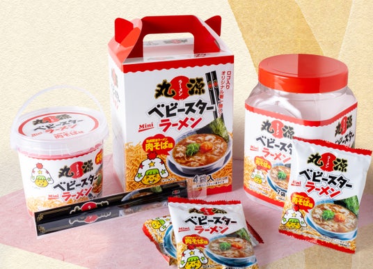 4月中旬より丸源ラーメンの「熟成醤油ラーメン 肉そば」の味をイメージしたベビースターラーメンが期間限定でアミューズメント施設に登場します!