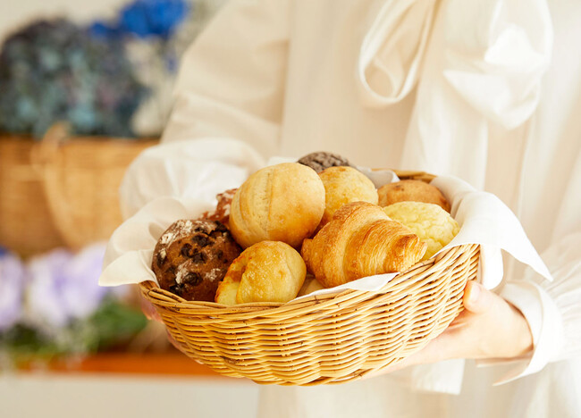 フラワーサイクリスト株式会社RIN(以下、RIN)にご協力いただき、イベント等で短い役目を終えた「ロスフラワー」を使用したコーディネートにしました。Pan&のパンの賞味期限は製造日から365日間。食べたい時に必要な分だけ焼くため、家庭の食品ロス削減にも繋がるサステナブルなパンで、「無駄な廃棄を無くす」という点と「暮らしを豊かに彩る」というテーマを掲げている点はRINと共通しており、今回親和性のあるコラボレーションが実現しました。