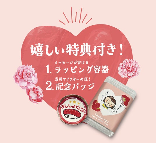 作ったお寿司はその場で食べてもOK!お母さんへのプレゼントにしたい方向けに、感謝のメッセージを書き込めるラッピングを用意しております。日頃なかなか言えない「ありがとう」や「大好き」の気持ちを、手作りのお寿司とともに伝えていただけます。