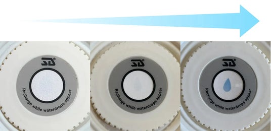 【Mini Polpo】は搭載したドライストーンの中に水分が溜まっていくと、蓋の表面に水滴マークが現れます。