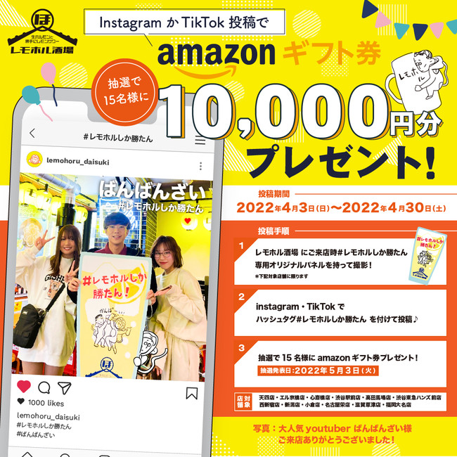 2.Instagram・TikTokでハッシュタグ #レモホルしか勝たん を付けて投稿。
