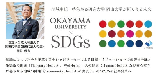 国立大学法人岡山大学は、国連の「持続可能な開発目標(SDGs)」を支援しています。また、政府の第1回「ジャパンSDGsアワード」特別賞を受賞しています。地域中核・特色ある研究大学として共育共創を進める岡山大学にご期待ください
