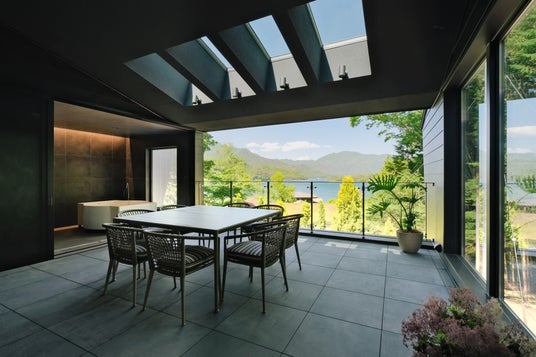 エアコンのいらない澄んだ空気の中で、洗練された建築とアートに触れながら、心ほどける時間を過ごせます。夏は湖遊び、秋は紅葉とサイクリング、冬は満天の星と温泉、春には桜が満開に。森では鹿やカモシカが姿を見せ、湖ではワカサギ釣りも楽しめます。