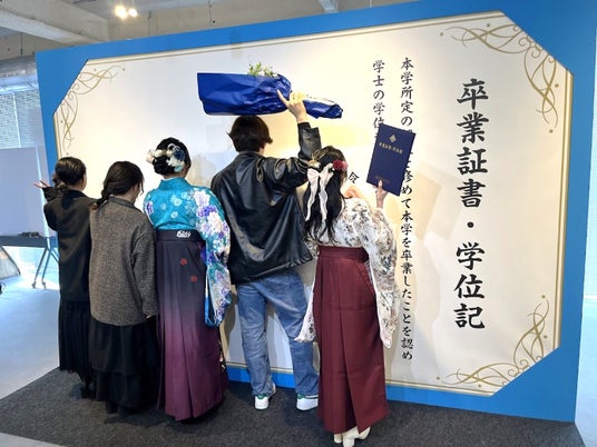 卒業式・学位授与式当日の特別イベントとして、昨年度に続き2回目となる亜細亜大学に加え、東京都市大学にて、卒業式の「想い出を記録したい」という若者のニーズを叶える、フォトスポットイベントをプロデュースしました。【亜細亜大学】