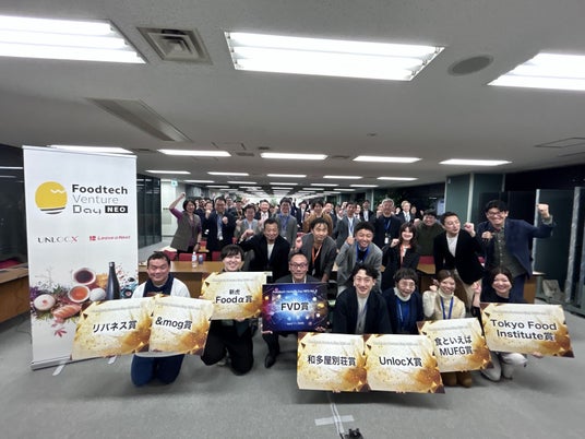 2025年04月11日に官民共創HUB(東京都港区)にて開催されたFoodtech Venture Day Neo Vol.2は、2019年に発足した『Foodtech Venture Day』を前身とした株式会社UnlocX、株式会社リバネス主催のフードテックイベントです。今回のイベントでは、先進的な技術・アイデアで新たな食の未来の創造をめざすパイオニア(スタートアップやベンチャー)企業11社に対して、大手事業者8社が応援したい企業にアワードを授与し、具体的に共創を進める目的で審査が行われました。イベント当日は、約70名が現地に集い、フードテック企業は自社の商材や食品を現地に持込むなどリアルなイベントならではの体験やネットワーキングの場として大きな盛上がりをみせました。