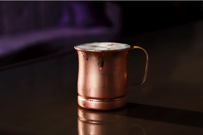 銅マグが印象的なモスコミュール。ウォッカとジンジャーエール(ジンジャービア)の清涼感あるカクテルに、バタースコッチの甘さとスパイスを効かせた一杯をお楽しみください。