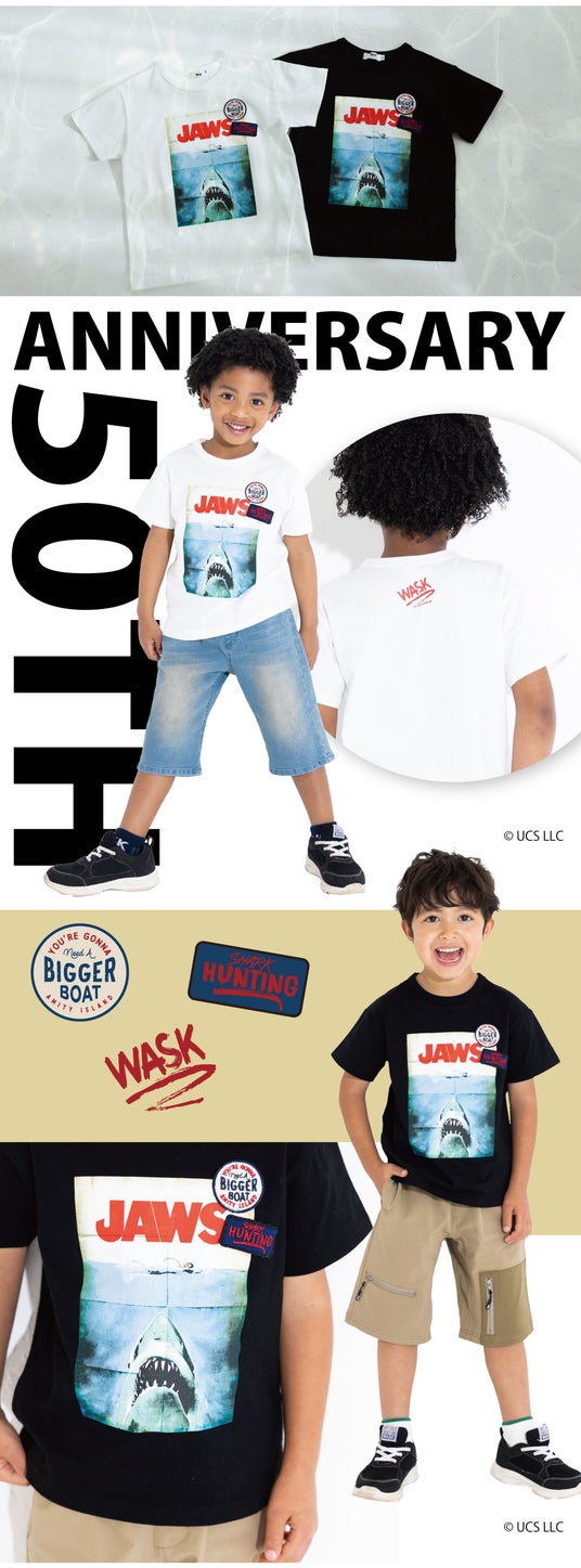 神戸発、子供アパレルの株式会社べべ(本社:兵庫県神戸市、代表取締役社長:卜部 正寿)が展開する「WASK(ワスク)」より、 スティーヴン・スピルバーグ監督の代表作『JAWS(ジョーズ)』映画公開50周年を記念して、コラボレーションアイテムが新登場。4月18日(金)よりWASK(ワスク)全国35店舗、BEBE公式オンラインストア(BEBE MALL)にて同時発売。