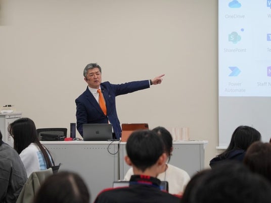 続いて、土本康生教授によるICT環境利用説明会がありました。叡啓大学での学びの特長の1つに、基本ツール科目 デジタル・思考系があります。IoTやAIなどが注目されるなか、本学でも、ICTおよびデータサイエンス、ロジカルシンキング、デザイン思考、システム思考など、今後の社会で必要とされるスキルの修得を目指しています。