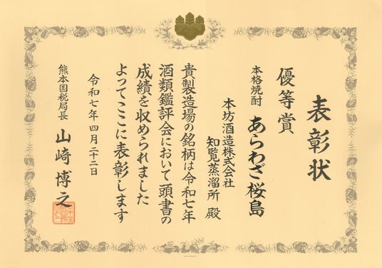「熊本国税局 令和7年 酒類鑑評会優等賞製造場代表 受賞」プレスリリースはこちら