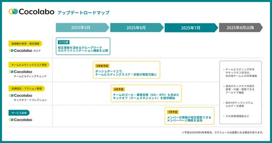 - 2025年6月:チームビルディングチェック公開・Cocolaboキックオフアップデート