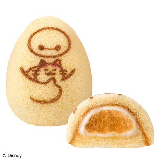 ぎゅっとしたくなる可愛さの『ベイマックス/りんごケーキ』。中にはジューシーなりんごジャムと、真っ白ボディのようななめらかミルククリームがとろ~り。「ベイマックス」みたいに柔らかなふかふかスポンジで優しく包みこみました。ひとくち頬張れば、心もとろんと癒されそう。