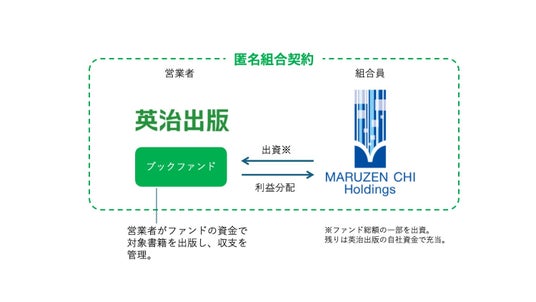 今回、2作の復刊にかかる費用をファンド化し、丸善CHIがその一部を出資(残りは英治出版の自社資金で充当)。出版プロジェクトの損益を出資比率に応じて分配します。これにより、英治出版は初期のリスクを抑えつつ書店と連携した販売促進が可能となり、丸善CHIは通常の販売収益に加えてプロジェクト全体からの利益獲得が可能となります。