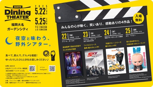 5月22日(木)~25日(日)の4日間、福岡大名ガーデンシティ・パーク(福岡市中央区大名2-6-50)にて「大名ダイニング・シアター」を開催します!