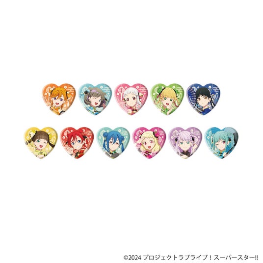 ハート型缶バッジは、大きさおよそ5.3cm×5.7cm。キャラクターのお顔をクローズアップしたデザインなので、メンバーたちの表情をより間近で眺めることができます!