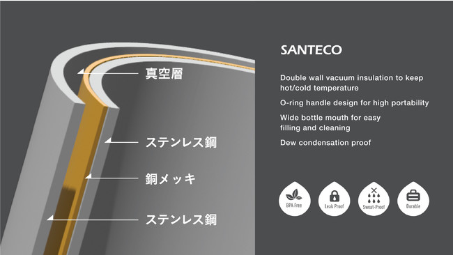 内瓶には銅メッキ加工が施されているので、保温&保冷をより持続させます。