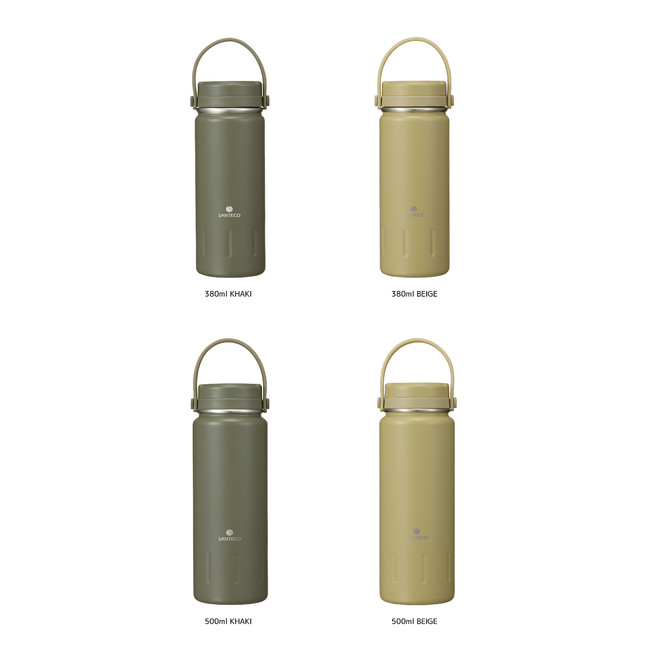 2サイズ(380ml、500ml)、2カラー展開(ベージュ、カーキ)