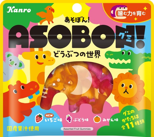 「あそぼん!」は、『お菓子な、おもちゃ。』をコンセプトに、カラフルで様々な動物を模ったカタチが特徴の、親子で一緒に食べられるグミです。その特徴から、好奇心や五感を楽しく刺激し、楽しみながら食べられるため、いつものおやつ時間が親子のコミュニケーションの場になると、お子様とその親御様を中心にご好評を頂いています。