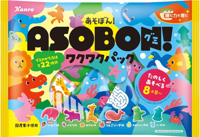 ※「あそぼん!グミ ワクワクパック」は「あそぼん!グミ どうぶつの世界」と「あそぼん!グミ うみの世界」に入っているグミ菓子が両方入っている個包装仕様の商品です。