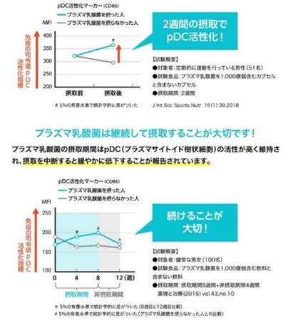■「プラズマ乳酸菌」の2週間以上の摂取によってプラズマサイトイド樹状細胞(pDC)が活性化!