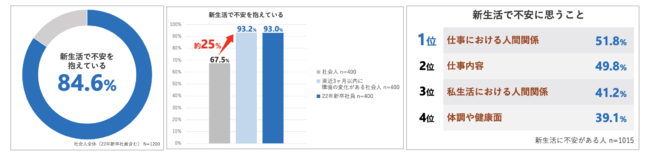さらに、8割以上が新生活で「人間関係」や「仕事内容」「体調や健康面」などで不安を抱えていることが明らかに。