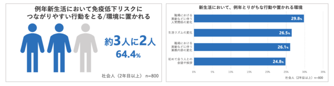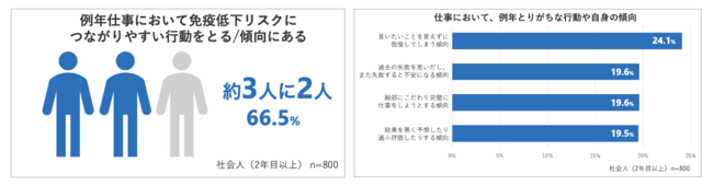 例年、6割以上が免疫の低下リスクにつながりやすい行動をとる、環境に置かれることが明らかに。