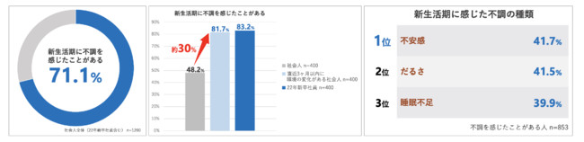 1.社会人※の7割以上が新生活期に「だるさ」や「睡眠不足」などの不調を経験
