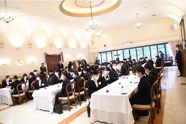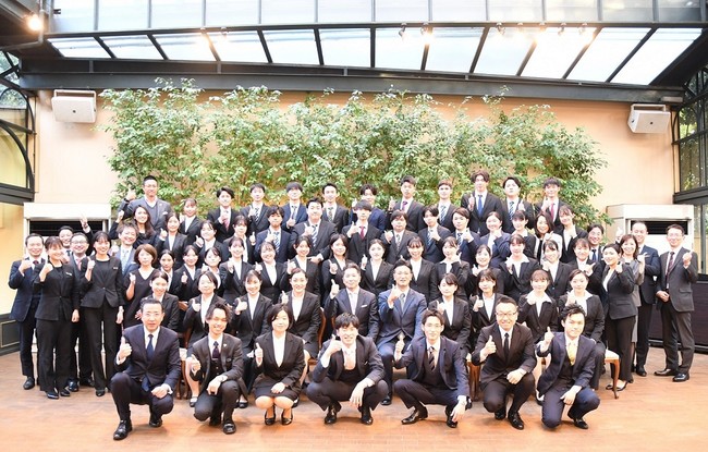 2022年4月1日(金)、株式会社ひらまつ(本社:東京都渋谷区恵比寿、代表取締役社長兼CEO:遠藤 久、以下 ひらまつ)は新入社員46名を迎え、自社で運営する東京・代官山のイタリア料理店「リストランテASO」にて入社式を行いました。企業を支えるのは「人」。だからこそ、ひらまつの一員となるその瞬間から一人ひとりを大切に迎えたいという想いを「ウェルカムプログラム」という形にして、今年は入社式をリアル開催し、新入社員を迎え入れました。