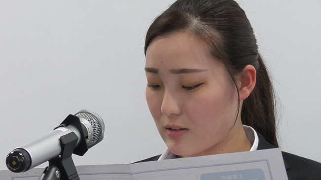 「一年後の自分」を発表する新入社員