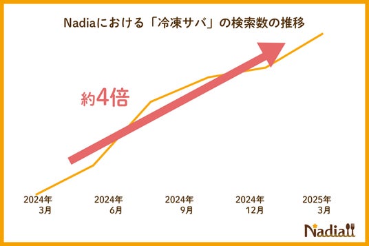 食品価格の高騰が続く昨今、便利な「冷凍野菜」や「冷凍サバ」に、改めて注目が集まっています。冷凍食材の魅力は、天候や季節に左右されず、年間を通して価格が安定しているため、食費をコントロールしやすい点が挙げられます。また、冷凍されているので日持ちする上、必要な分だけ使えるので無駄が出にくいのも嬉しいポイントです。さらには、野菜なら皮むきや下茹で済みでカットされた状態、サバなら骨取り済みや切り身になっているなど、下処理済みのものが多く、時短調理にも便利なので、忙しい日にも助かります。実際にNadiaでも「冷凍サバ」の検索数は昨年に比べ約4倍に伸長しており(※)、今注目すべきワードだと言えます。