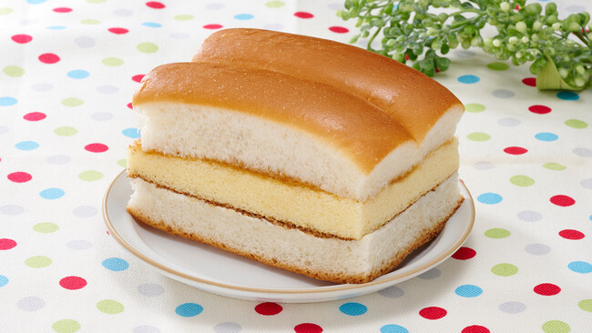 ふんわりとしたパンをスライスし、ホイップクリーム、スポンジケーキ、メープルクリームをサンドしました。食べ応え抜群のパンです。