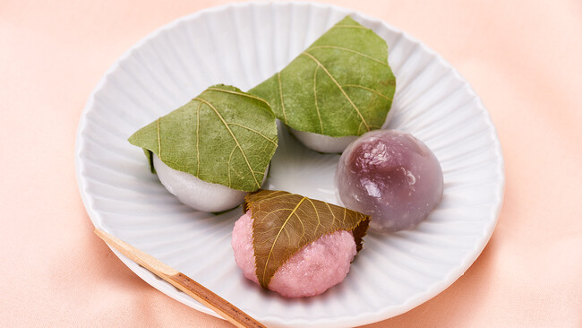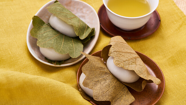 香り高い柏の葉で包んだ柏餅です。つぶあんタイプとこしあんタイプの2種を発売します。どちらも2個入です。季節限定の和菓子をお楽しみください。