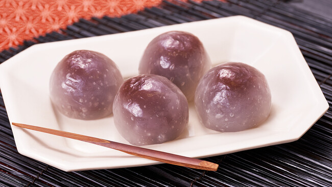 これからの時期におすすめの和菓子、こしあんを包んだ葛まんじゅうの4個入りです。冷やしても美味しくお召し上がりいただけます。透き通った葛まんじゅうの中にこしあんが透けて見え、涼味を感じる一品です。