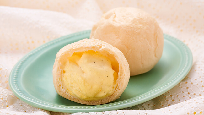バニラビーンズ入りのとろっとしたカスタードクリームを入れたもちもち食感のシュークリームです。